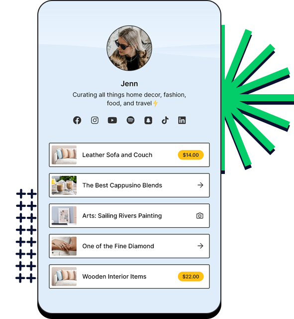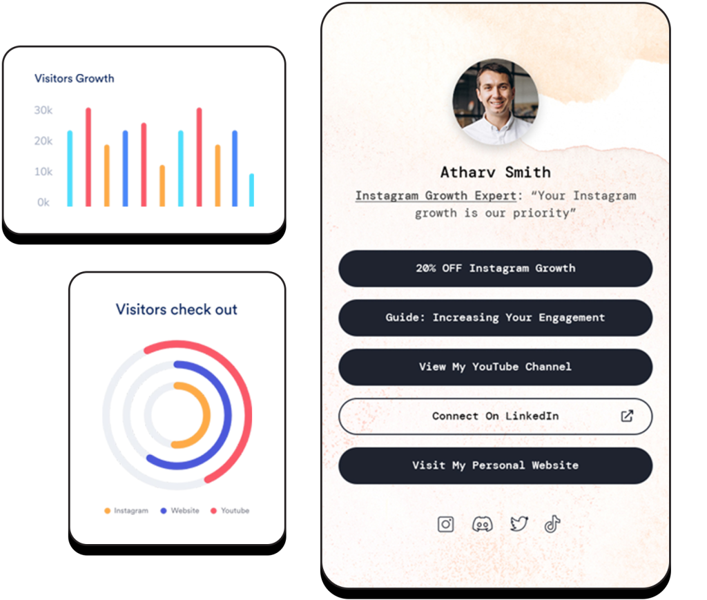 Connect your TikTok, Instagram, Twitter, website, store, video, music, podcast, events and more. It all comes together in a link in bio landing page designed to convert.